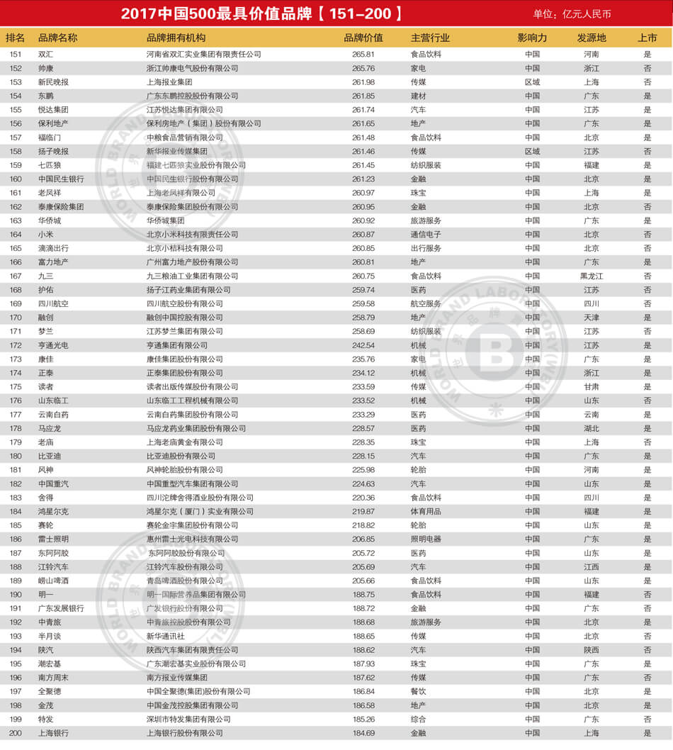 2017年《中国500最具价值品牌》排行榜 返回首页