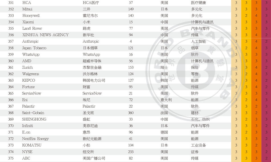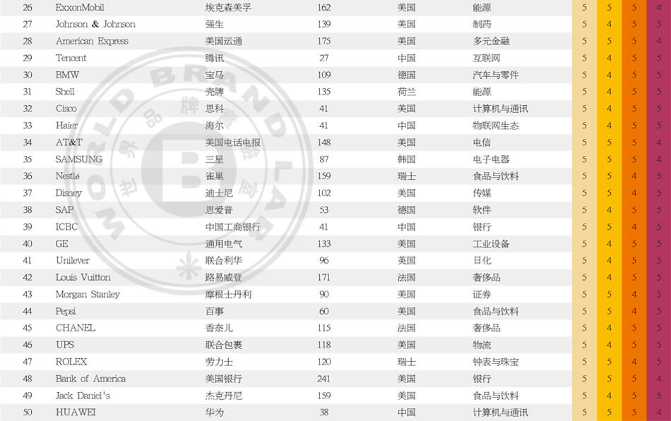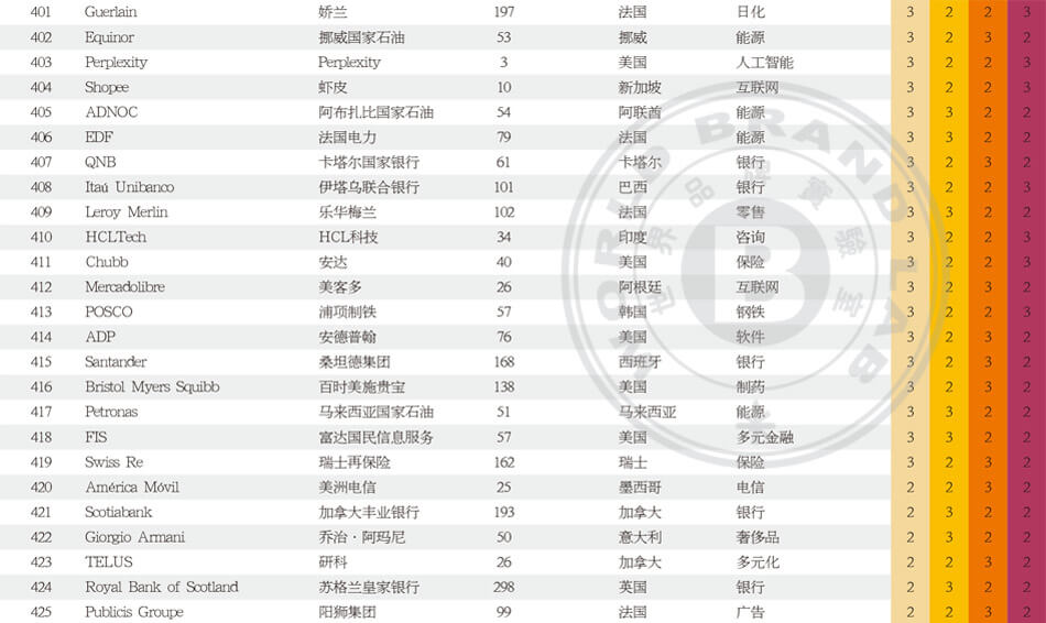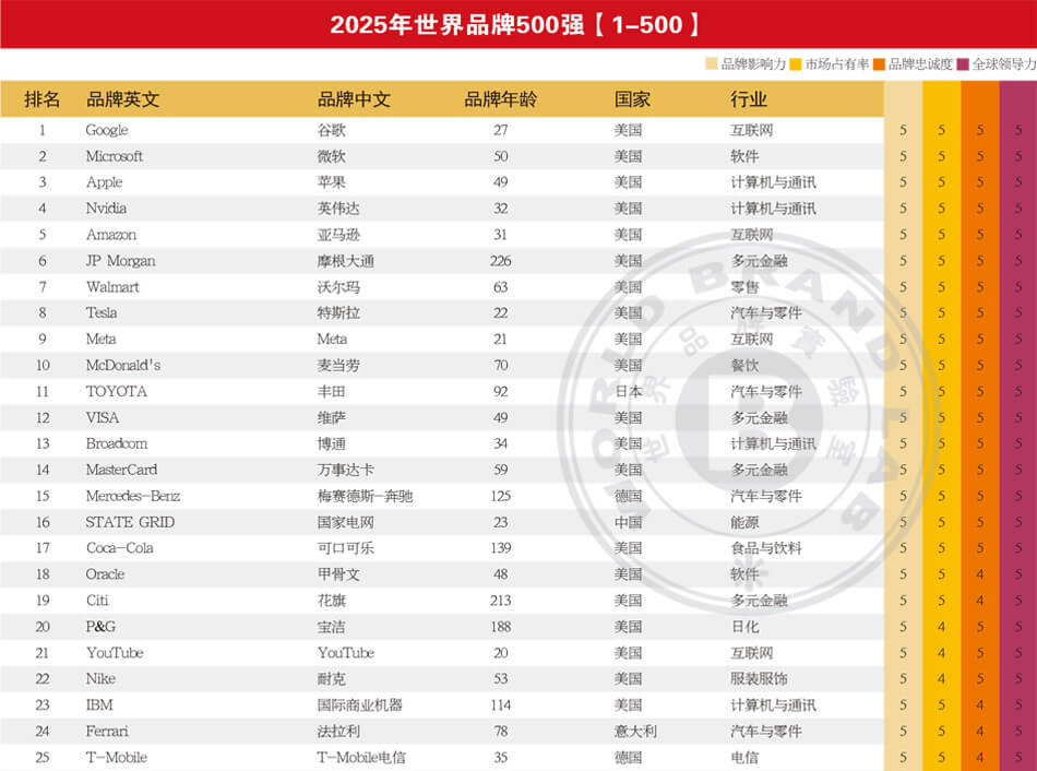 2025年《世界品牌500强》排行榜中的50个中国品牌