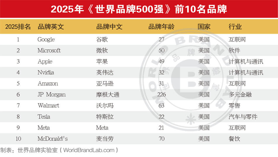 2025年世界品牌500强主榜单:2025年《世界品牌500强》总榜单
